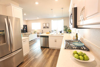 Located in the desirable Lake View Terrace community of Sylmar, this move-in ready home, built in 2019, combines modern day living with practicality and efficiency. Enter an open entertainer's living space where the living room, dining room and kitchen feature high ceilings, recessed lighting, and beautiful durable wide plank flooring. The gracious kitchen features a large peninsula with sink, perfect for morning breakfast or buffet style dinners. Stainless steel appliances, gas stove top, large pantry, loads of cabinets and Caesarstone counters complete the kitchen. The direct-access two-car garage has additional room for storage. Tall sliding glass doors take you out to a private yard with a patio for seating and entertaining, and an environmentally conscious grassy area. Pick your own cooking herbs, veggies and strawberries growing in the raised planting area and there is even a lemon tree for homemade lemonade. If you would like to try your hand at growing more produce, across the street is the HOA's community garden! Upstairs are three sunny bedrooms, all with large walk-in closets, a super convenient laundry room and full hall bathroom. The primary bedroom suite has a bright oversized bathroom with dual sinks, separate soaking tub and shower. Enjoy the peace of living in Lake View Terrace, close to shopping, schools, convenient freeway access and just a short drive from the City center.