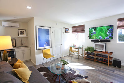 Located at the end of a tree-lined cul-de-sac street, is a super charming 2+ bedroom, 1+ bathroom bungalow built in 1952. This property has the best of both worlds; highly sought after features for today's needs, mixed with original charm. There is even a beautiful bonus space that could be a perfect writer's retreat, home office, workout room or place for your guests. Enter the main home positioned behind a contemporary fence, into a living room complete with fireplace and beautifully refinished original hardwood floors. The dining room features a detailed exposed tung and groove vaulted ceiling. The recently remodeled kitchen has a large gas range, loads of counter space and a view out to the yard. Both bedrooms have hardwood floors and are conveniently located on either side of the dramatic midnight blue tiled bathroom. Enjoy the extra large soaking tub and the luxurious designer touches of the main home's bathroom. Near the award-winning Kester Avenue Elementary School and minutes away from Ventura Boulevard, with its great dining and shopping, and easy access to multiple freeways and transportation.